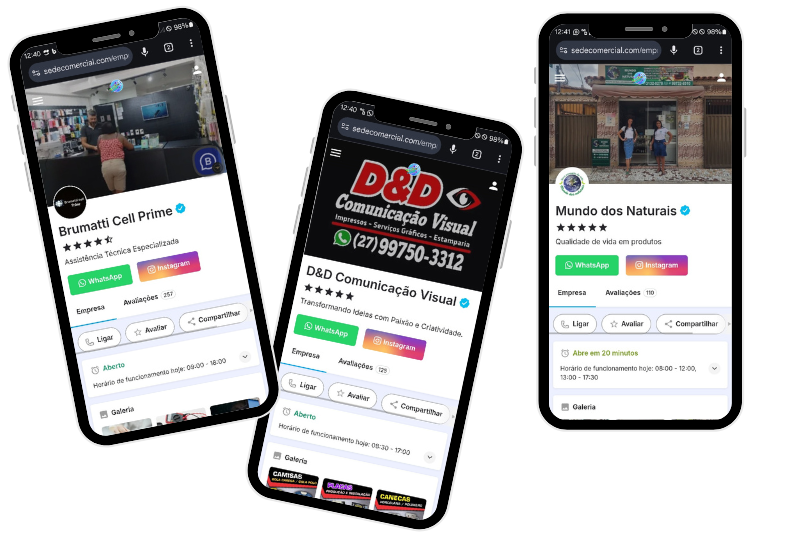 Chryslaine M F Betzel07/12/2023 A Sede Comercial sem dúvida foi um passo muito importante para o crescimento da minha empresa Passei de uma empresa anônima para uma empresa reconhecida e encontrada na melhor plataforma da região Só tenho que agradecer pela oportunidade Luara Viali18/08/2023 Ter um espaço para receber o Feedback dos clientes é gratificante e impulsiona nosso compromisso com serviços excelentes na academia. Nossa parceria com a Sede Comercial é de grande valor, juntos trilhamos um caminho de sucesso único, aprimorando constantemente a experiência para nossos membros. Jamilson Santos16/08/2023 Estou muito satisfeito com o Sede Comercial, um site que tem aumentado a visibilidade dos nossos produtos e impulsionado nossas vendas. Parabenizo a equipe pelo trabalho eficaz e pela plataforma de fácil uso. Continuaremos a aproveitar os recursos oferecidos para expandir nossos negócios. Agradeço pela parceria. Joao paulo Santos11/08/2023 Hoje, a Barbearia JP está mais acessível do que nunca. A página exclusiva na SEDE COMERCIAL é um espaço onde meus clientes podem entrar, agendar e esclarecer dúvidas. É uma adição valiosa ao nosso serviço. Flavio Brumatti11/08/2023 Quando vejo uma mensagem no meu WhatsApp vinda da Sede Comercial, sei que algo bom está acontecendo. É a confirmação de que meu negócio está ganhando visibilidade e atraindo novos olhares. Essa mensagem não só alegra meu dia, mas também me mostra que estou no caminho certo. Andrey Batista11/08/2023 A SEDE COMERCIAL é a resposta para qualquer empreendedor que busca crescimento. Minha visibilidade disparou, e a plataforma se tornou uma extensão vital do meu negócio. Estou realmente satisfeito e animado para explorar mais, e estou otimista para o que está por vir. Acley Filho03/08/2023 Atendimento e suporte excelente, recomendo o portal! Estão de parabéns